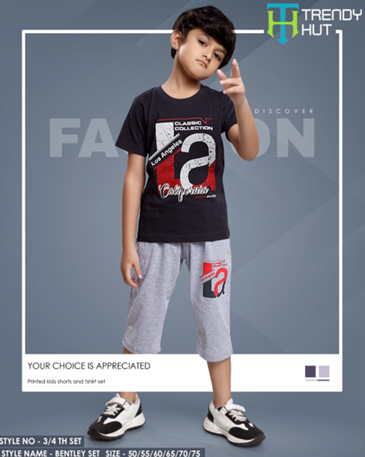 Upgrade your boy’s wardrobe with this Charcoal Black T-Shirt & Pearl Ash Capri Set, crafted for comfort and trendy casual fashion. Made from 100% cotton single jersey fabric (180 GSM, bio-washed), this set is soft, breathable, and durable. The charcoal black T-shirt adds a bold look, while the pearl ash 3/4 capri ensures easy movement and a cool style, making it perfect for playtime, outings, and daily wear.