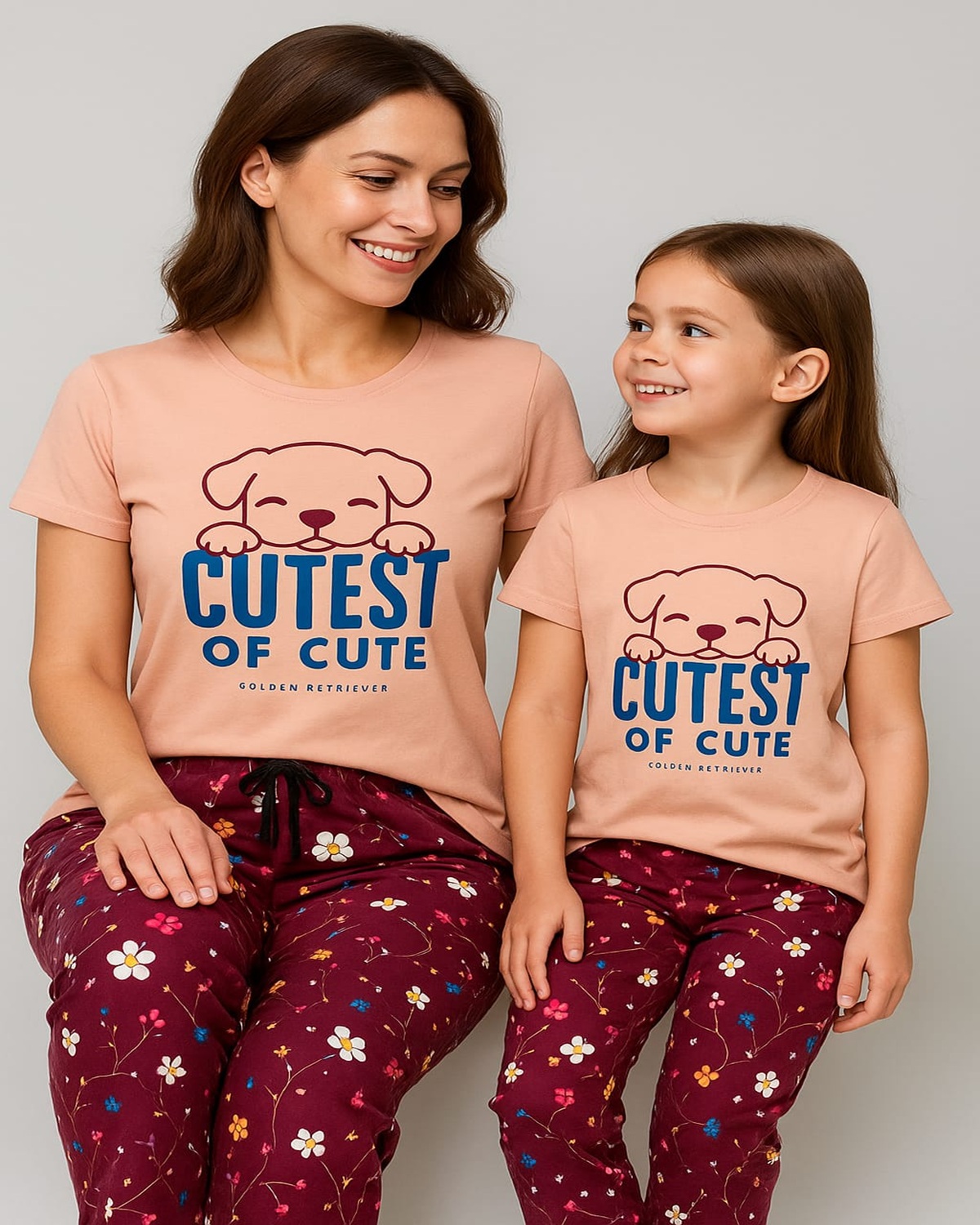 Bring smiles and cozy vibes to bedtime with the Cutest of Cute Pup Mom-Daughter Pyjama Set, a playful matching outfit designed for comfort and family bonding. Made from ultra-soft, breathable cotton, this adorable set features half-sleeve T-shirts with charming puppy-themed prints, paired with coordinated full-length pyjama pants that ensure ease of movement and all-night comfort. Perfect for twinning moments, relaxed lounging, or sleepovers, this set keeps both moms and daughters stylish and comfortable. The Mom and Daughter Pyjama Sets are also available separately, giving you the option to shop individually or as a complete matching set.