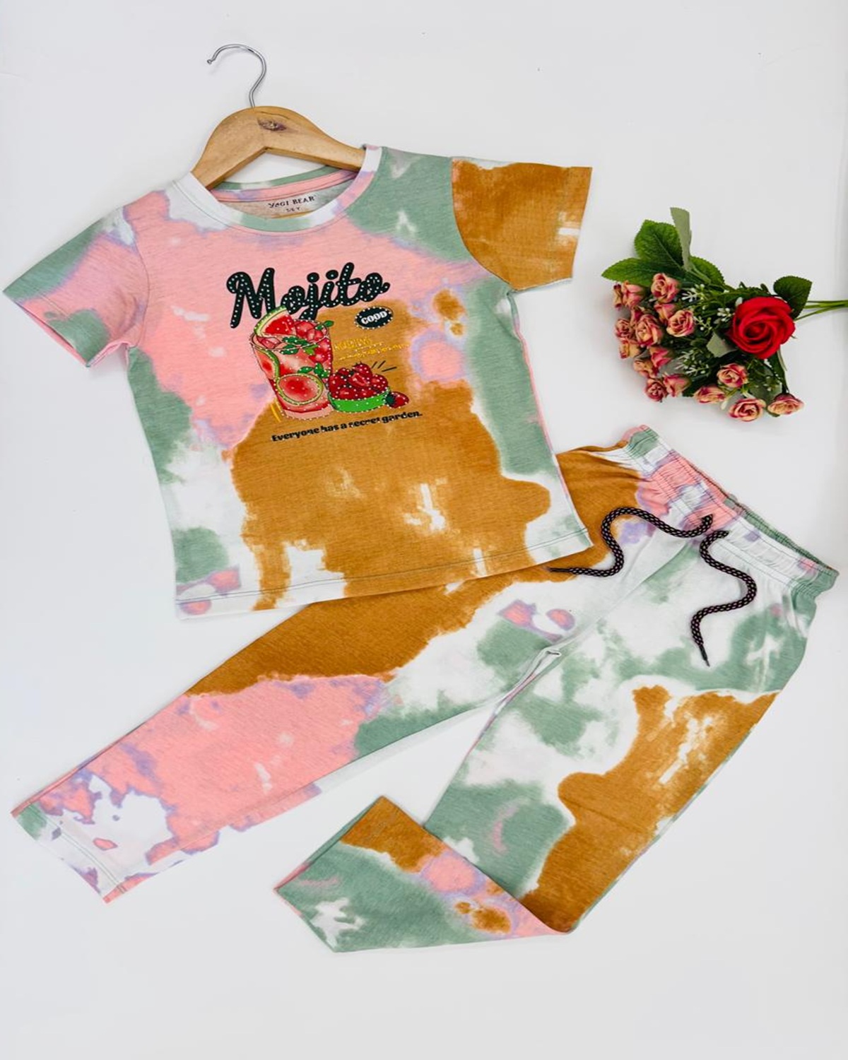 Add a refreshing twist to bedtime with the Girls Strawberry Mojito Tie-Dye Pyjama Set, a perfect mix of playful style and cozy comfort. Made from 100% Combed Cotton Biowashed (180 GSM), this set is super soft, breathable, and gentle on the skin. The half-sleeve T-shirt features a cute strawberry-inspired design, paired with green and pink mojito-style tie-dye full-length pyjama pants for a bright, cheerful look. The pants are designed with an elasticated waist and adjustable rope to ensure a snug and comfy fit. Perfect for lounging, nightwear, or sleepovers, this set brings a splash of fruity fun to every night.