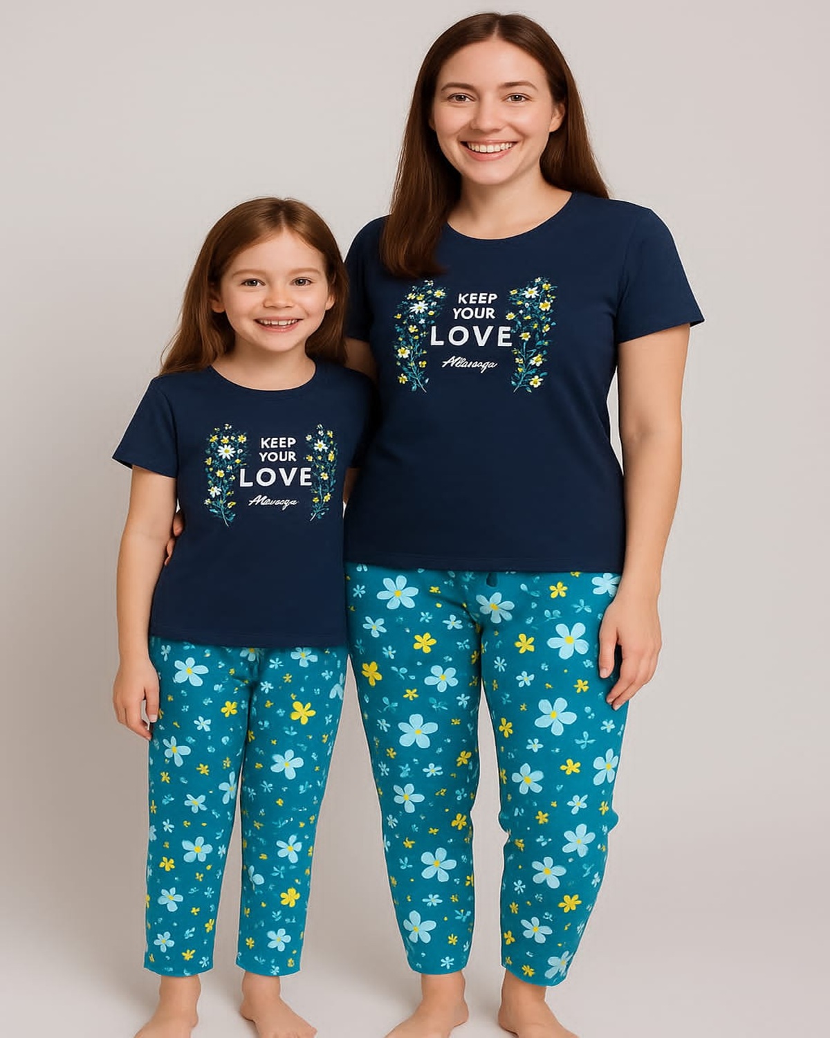 Celebrate love and togetherness with the Keep Your Love Blossom Mom-Daughter Pyjama Set, a charming matching outfit designed for comfort and family bonding. Made from ultra-soft, breathable cotton, this delightful set features half-sleeve T-shirts adorned with floral-inspired “Keep Your Love Blossom” prints, paired with coordinated full-length pyjama pants that ensure comfort and ease of movement. Perfect for cozy nights, sleepovers, or relaxed lounging, this set keeps both moms and daughters stylish, comfy, and twinning-ready. The Mom and Daughter Pyjama Sets are also available separately, so you can shop individually or as a complete matching pair.